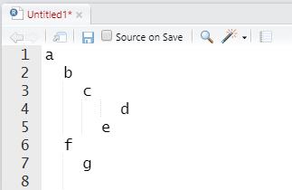 스크립트 창에서 코드 들여쓰기 간격을 보여준다.